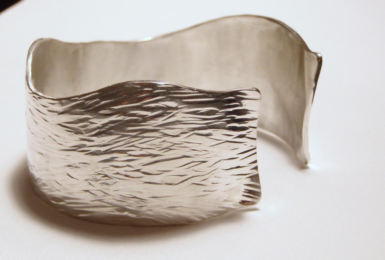 above: sterling silver cuff bracelet. $485 This bracelet has been designed to invoke the feeling of flowing water and lake views. It is highly polished and fits the arm beautifully.
